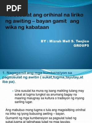 Naisusulat Ang Orihinal Na Liriko Ng Awiting Pdf