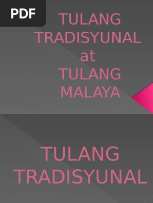 Tulang Tradisyunalinihahandog ng Ika-pitong grupoAng tradisyonal na tula ay mga pahayag na kadalasang nagtataglay ng sukat at tugma sa bawat taludtod o mga salita at paraan ng pagbuo ng pahayag ay piling-pili matayutay at masining bukod sa pagiging madamdaminElemento ng Tradisyunal na TulaSukatbilang ng mga pantig sa bawat. Tradisyunal sukat Malaya tugma tula Tula kultura bansa pinagmulan isinasalaysay Sapagkat simbolo kariktan pahayag matalinghaga A P L I K A S Y O N Sumulat ng tulang mayaman sa matatalinhagang pananalita at simbolismo na tungkol sa kadakilaan ng isang ina na may tatlong saknong o higit pa. Maraming halimbawa ng magandang asal.