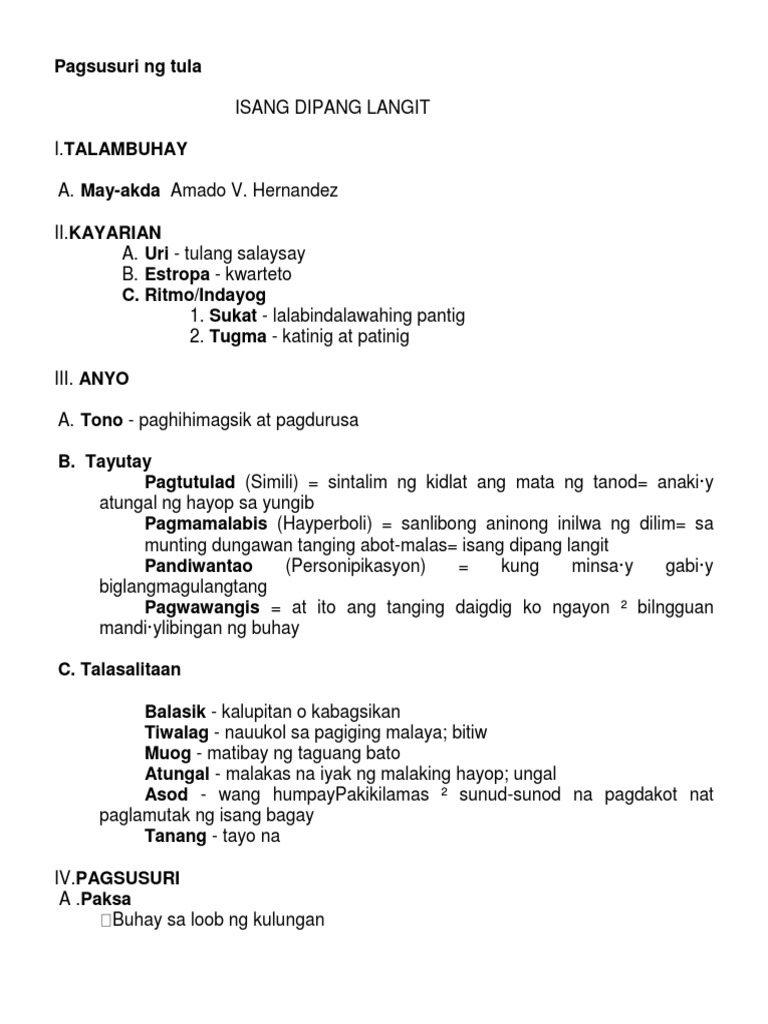 Ang Tula o poem sa ingles ay isang uri sining o panitikan na kilala dahil sa malayang paggamit ng. Ang Ibong Nakahawla Uri Ng Tulang Liriko O Pandamdamin A. Ang tulang ito ay may malayang taludturan ngunit walang tugma ngunit may ritmo sapagkat napaloob ditto ang paghihinagpis ng isang magsasaka na labis niyang ikinalungkot dahil sa nangyari sa kanyang lupain.