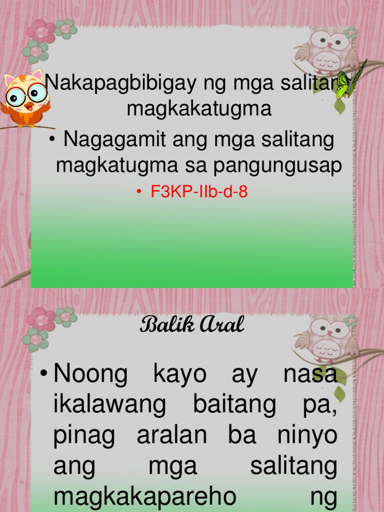 Pagkilala sa salitang magkatugma Subukan kung ano ang alam ng mga mag-aaral tungkol sa. Sa puso mo ay ingatan at sa diway kandilihin Balang-araw ay tutubot parang utang na singil in. Hindi rin ako naniniwala rito.